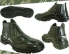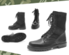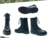 CONFECCIONADO EM COURO, CANO EM LONA REFORÇADO, COM FECHAMENTO DE AMARRAR, CONTENDO 11 ILHOSES, FORRAÇÃO INTERNA, SOLADO DE BORRACHA, BLAQUEADO, RESITENTE A TEMPERATURA DE 300°C, COM C.A.